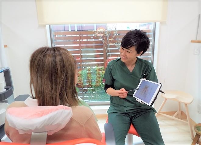 当院の治療は、患者さまのお悩みやお口の中の状況を把握した上で、状況と治療方法について丁寧に説明させていただくことからはじまります。 特に初診時は、落ち着いた個室のカウンセリングルームで、患者さまとお話の時間を十分にとらせていただき、治療期間や費用のこと、その他ご不安な点の聞き取りや、ご希望等もお伺いいたします。 出来るだけご希望に添えるような治療が出来るよう、患者さまの疑問にお答えし、患者さまにご納得していただくような治療計画を立ててまいりますので気になることはなんでもお話しください。